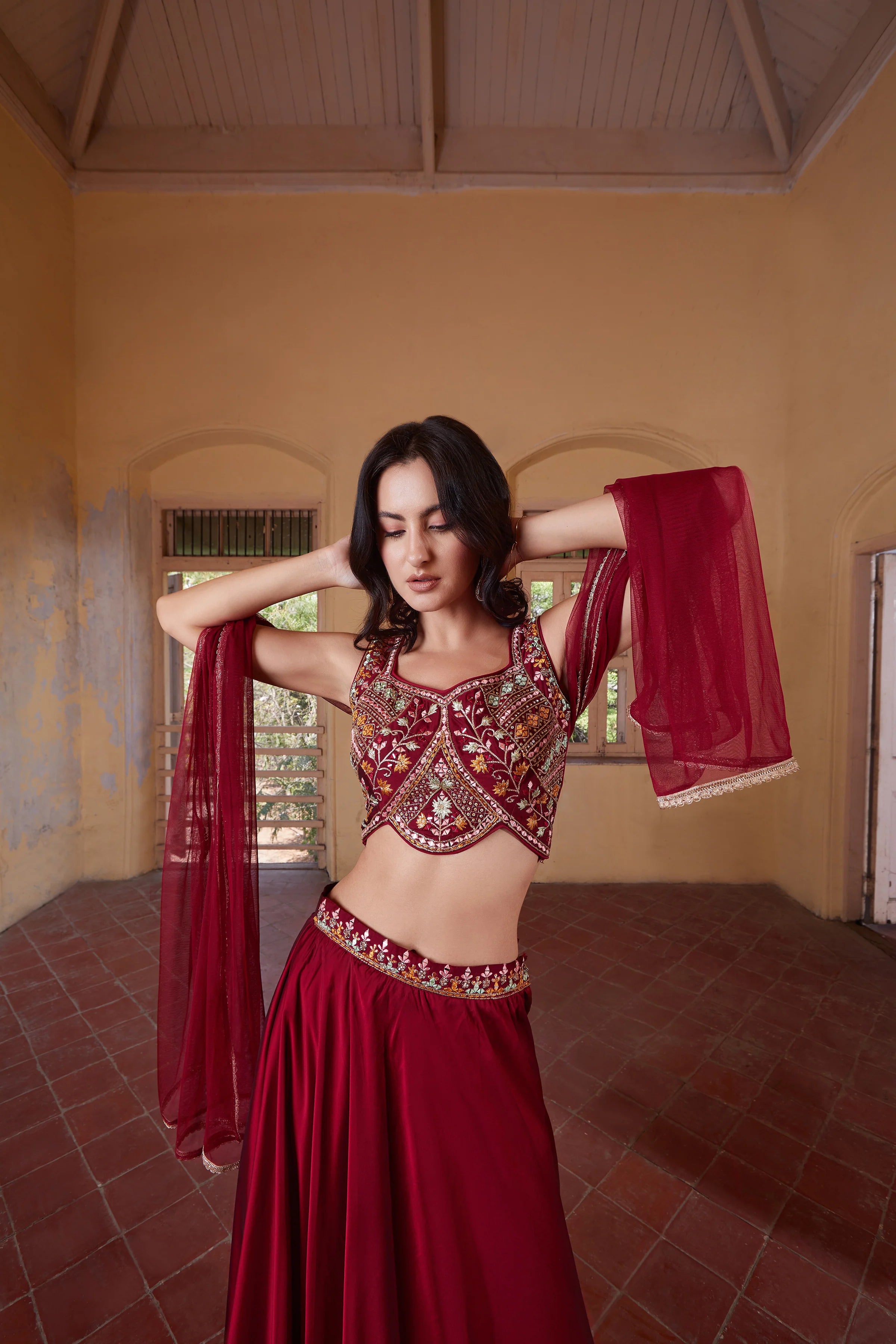 Our festive edit takes you from Ganpati aarti in elegant traditional wear, to Karwa Chauth in rich reds and maroons, Navratri nights in bright, dance-ready lehengas, and Diwali celebrations in shimmering suits, shararas, and fusion co-ords. Each piece blends timeless tradition with modern silhouettes, making them perfect for prayers, parties, weddings, and gifting.